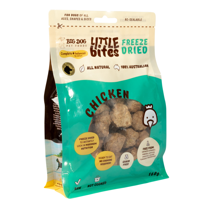 Big Dog Little Bites Freeze-Dried Chicken is a complete and balanced meal for dogs of all ages, shapes, and sizes. This all-natural, 100% Australian product is freeze-dried to lock in maximum nutrition.