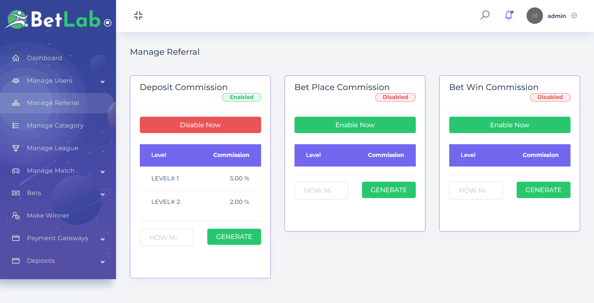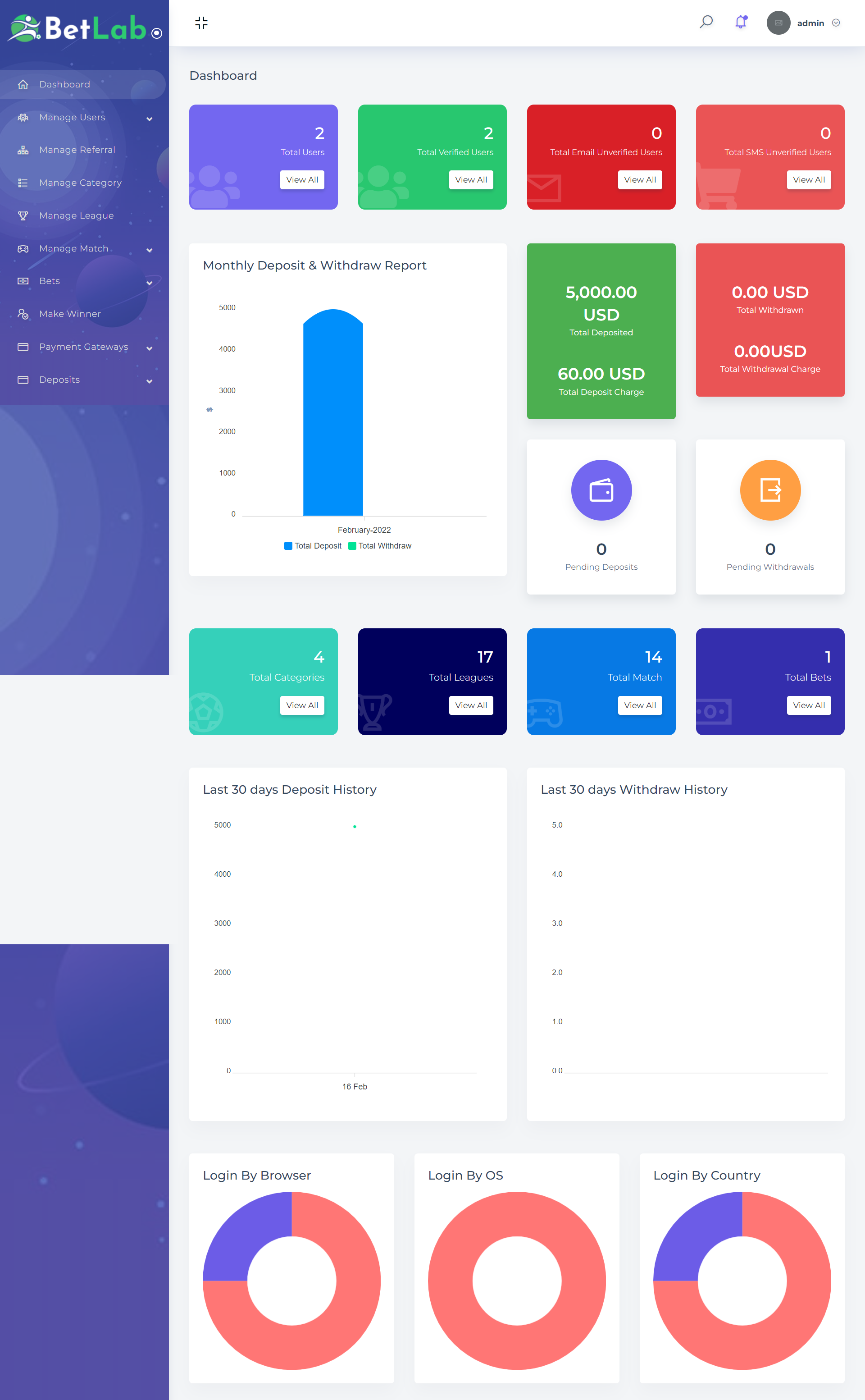 BetLab is a professional sports betting Solution that comes with PHP laravel. It’s developed for those people who want to start their Bettings website. Sports betting makes up about 30 to 40 percent of the global gambling market, which also includes lotteries, casinos, poker, and other gaming. It’s estimated that over half a trillion (over €500 million) is wagered in bets around the world annually. BetLab is a complete solution for the Betting business. here, users join directly or by reference and are able to bet on any categories, live sports, or games. admin able to control all users, website and manage the game, live bettings and able to select a winner.